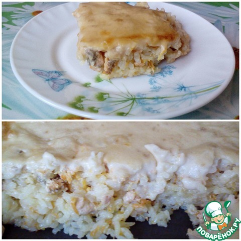 Рецепт «Рыбно-рисовая запеканка под сырным соусом»: