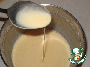Вылить тесто в форму с высокими бортиками, хотя тесто разливается тонким слоем.