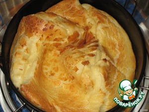 Через 15 минут аккуратно заглядываем, сверху над формой должна появиться огромная шапка теста.