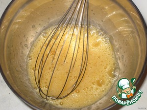 Для теста яйца немного взбить с солью и сахаром. Взбивать не очень сильно, до появления нескольких пузырьков.