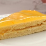 Вливаем сок, всыпаем цедру и ставим на огонь. Постоянно мешая (!) доводим смесь до кипения, убавляем огонь и кипятим, мешая непрерывно, минут 10 до загустения. Снимаем с огня и полностью охлаждаем. Холодная начинка похожа на густой кисель. Кладем корж на тарелку, смазываем половиной начинки и накрываем вторым коржом, остальную начинку выкладываем на корж.