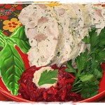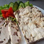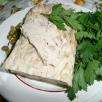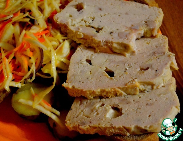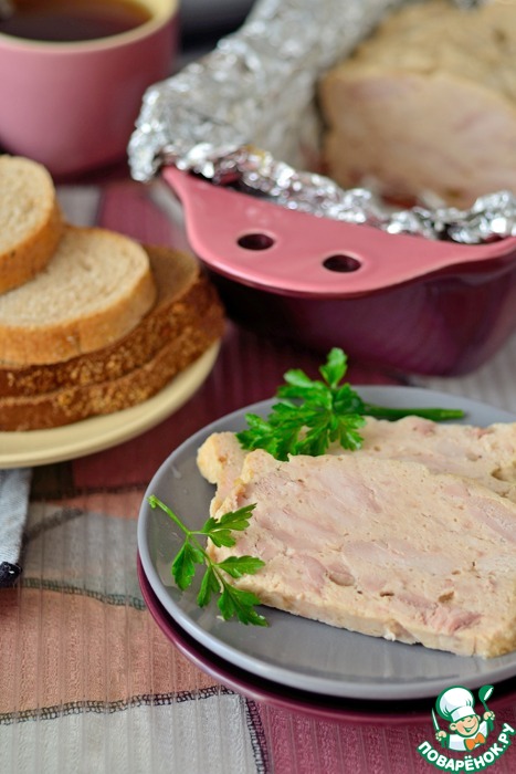 По истечении срока террин можно есть в горячем виде, например, с овощами или картофельным пюре. Если использовать в качестве нарезки на бутерброд, то поставьте сверху горячего террина небольшой груз и оставьте до полного остывания. Нежнейшее лакомство!