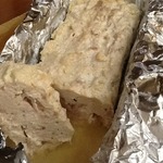 Форму для приготовления паштетов застелить фольгой или пергаментом, выложить нашу заготовку.