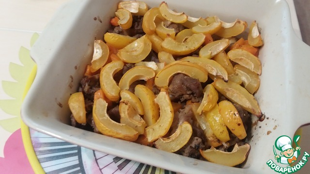 Не забудьте попробовать. Помимо связующих мышцы свойств айвы, она еще и кислая довольно. Даже больше чем … довольно. Поэтому, рассчитывая количество этих самых плодов, которые вы будете закладывать в казан, соотнесите к своим вкусам и пристрастиям.