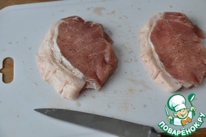 Для отбивных берём стейки корейки толщиной около 2 см, лучше на косточке.