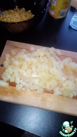 Я такой салат без кукурузы делала, только ананас, сыр и чеснок. Надо теперь с кукурузой попробовать будет!))