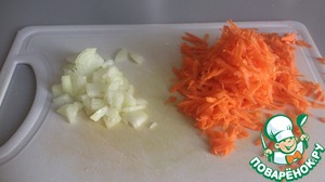 • 2. Пока все варится, сделаем пережарку. Нарежем лук и натрем на терке морковь.