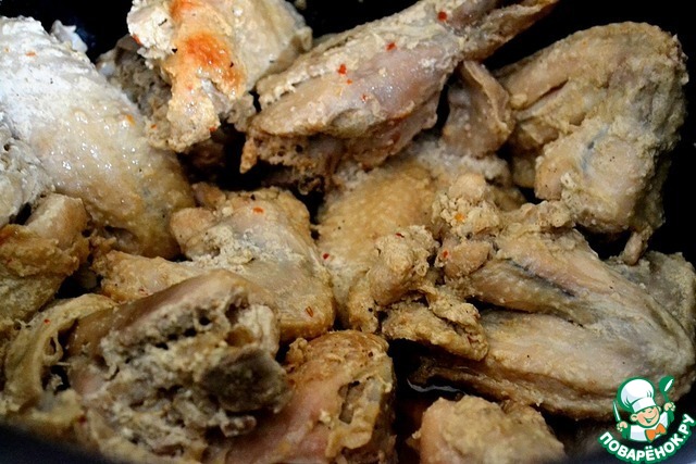 Куски курицы тщательно обмазать маринадом и оставить минимум на час.