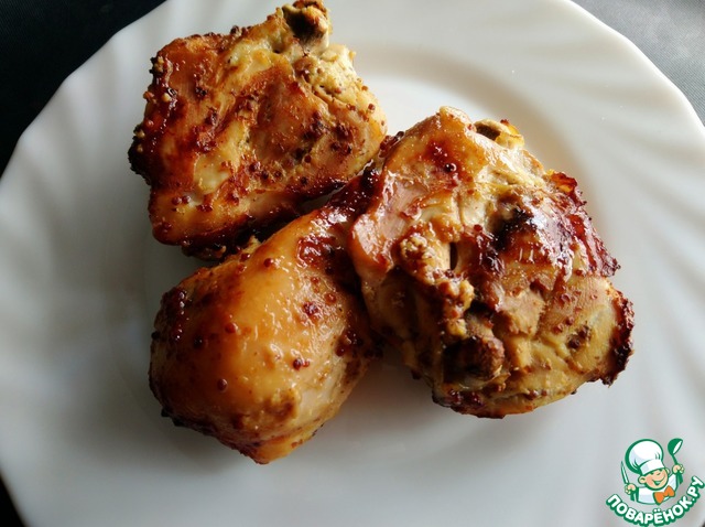 Вкусная, сочная и интересная курочка в простом, но ароматном маринаде. С восточной ноткой в виде специй и соевого соуса, и ударным аккордом запада - сметаной и горчицей. Угощайтесь!