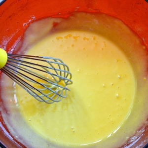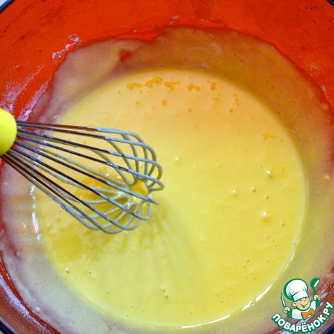 Влить молоко и снова перемешать... Тесто получается жидким.