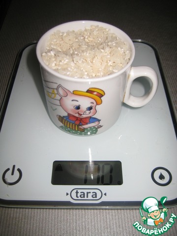 • Добавляем в рис 1 ч. л. подсолнечного масла, перемешиваем (чтобы не особо слипался), пусть ждет своего часа :-)