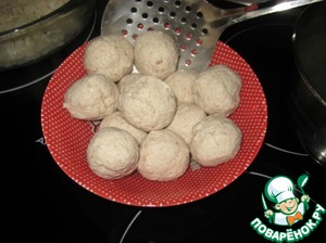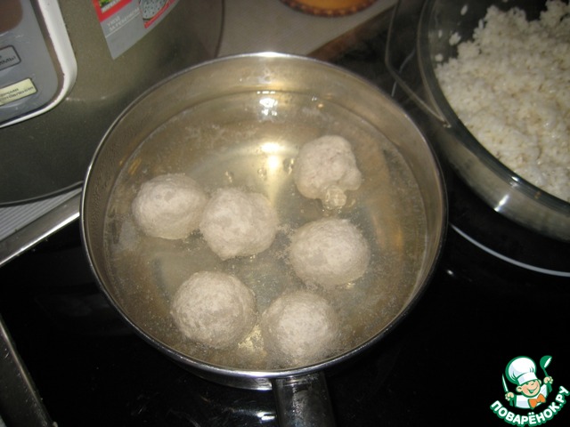 • Через 5 минут фрикадельки достаем из воды шумовкой