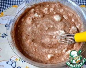 Всыпать муку и какао-порошок. Аккуратно перемешать.