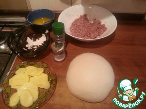 Очень нежный и вкусный пирог с мясом и картошкой. Для сочности и пикантного вкуса добавляется бараний жир - курдюк.