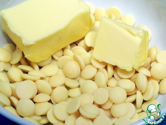 Белый шоколад и сливочное масло.