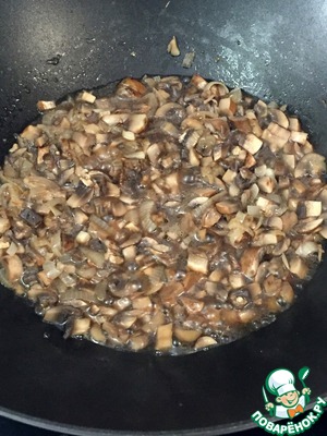 • Грибы мелко нарезать и добавить к луку. Готовить при закрытой крышке около 5 минут.
