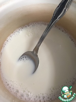 • Затем осторожно вводим горячее молоко, постоянно помешивая.