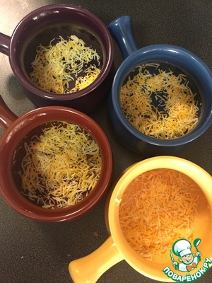 • Формы для запекания хорошо смазать сливочным маслом, не забывая про стенки, и посыпать 1/2 сыра.