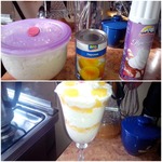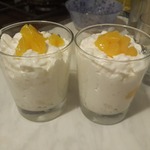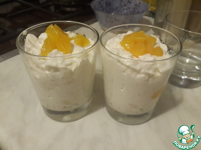 Воздушную, нежную рисовую массу выкладываем в креманки (бокалы), чередуя с персиками по своему усмотрению.