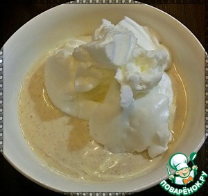 Белок взбить в крепкую пену, добавить в тыквенную массу и аккуратно перемешать до однородности.