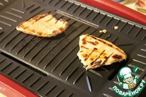 Кусочки рыбы, обсушить бумажным полотенцем и обжарить на гриле с двух сторон до готовности.