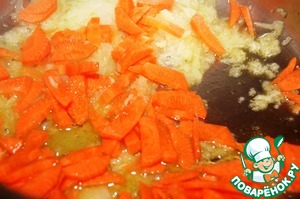 • Нагреть масло и добавив в него тертые на терке лук и чеснок, тушить 2 минуты. Затем добавить морковь и тушить еще 4-5 минут.