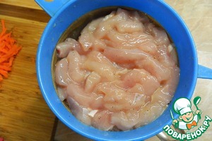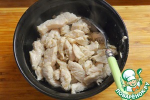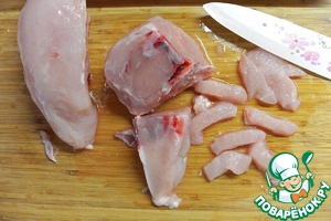 Мясо отделить от костей и нарезать на полоски.