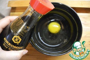 Яйцо хорошенько взбить с соевым соусом и