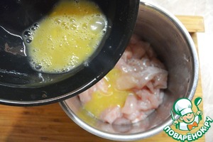 влить эту смесь в мясо. Перемешать и дать постоять минут 15.