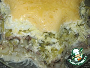 Выкладываем слоями, промазывая через слой майонезом. -