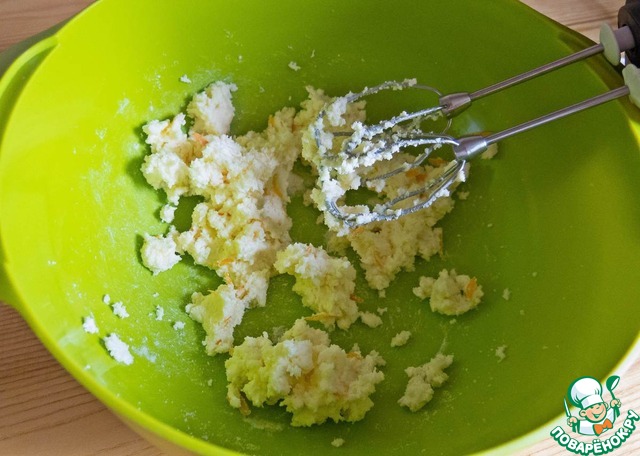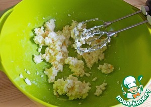 Начнем с приготовления нижнего слоя пирога. Ягода к этому моменту уже должна быть разморожена или если свежая - очищена, вымыта и немного обсушена. Итак, размягченное сливочное масло взбиваем с сахаром и с цедрой половины лимона.