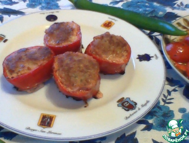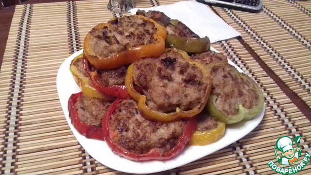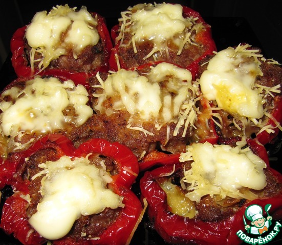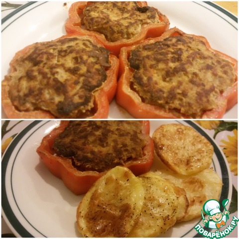 Переворачиваем перцы на другую сторону. У меня не было проблем, фарш хорошо "прилип" к перцу.