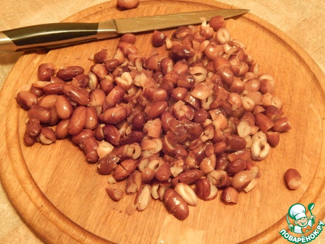Быстро за это время нарезаем отварную фасоль (у меня была отваренная для лобио), но вкусно и с консервированной
