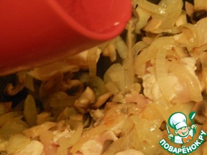Добавляем нарезанные шампиньоны. перемешиваем и обжариваем ещё пару минут