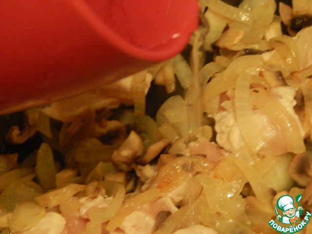 Выливаем бульон (можно и кипячёную воду), протушиваем под крышкой 2 минуты