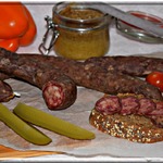 Посмотрела на сайте сыровяленые колбасы, конечно принцип готовки примерно одинаков, но все же такой же вариант не нашла. Если смотрела не внимательно, то не обессудьте. Вариант колбаски проверен не однажды. Готовить не сложно, но поверьте, очень вкусно))) Рекомендую, это очень просто, очень вкусно и без вредных добавок)))