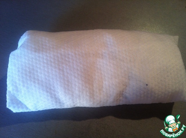 • Затем, не промывая и не убирая специй, обсушить салфеткой и завернув в тканевую салфетку убрать в холодильник.
