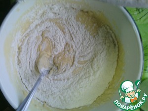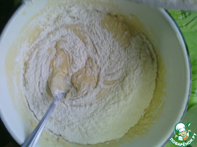 Аккуратно перемешиваем и добавляем понемногу муку.