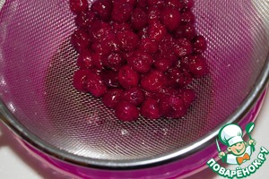 Поставить кастрюлю с вишней на огонь, довести до кипения и варить, помешивая, 3-5 минут. Затем, с помощью дуршлага слить сок в отдельную миску (его мы, частично, используем для пропитки коржа). Оставим сок и ягоды до полного остывания.