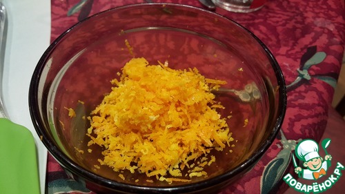 Добавить сок 1го апельсина. Взбить 1 минуту. Добавить цедру апельсина, перемешать.