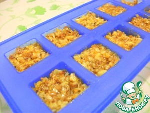 Горячую смесь аккуратно (горячо!) разложить в формочки (у меня силиконовые для льда) и оставить для остывания. Затем убрать в холодильник на 30-40 мин.