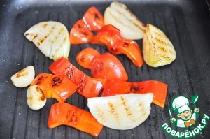 С помощью кисточки намазываем овощи оливковым маслом и обжариваем до румяности на сковороде-гриль.