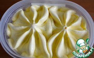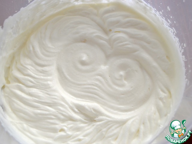 Охлажденные сливки взбить, добавив столовую ложку сахарной пудры.
