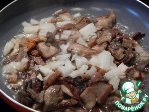 Грибы (у меня смесь лесных) вместе с измельченным луком обжарить на 3 ст. л. масла.