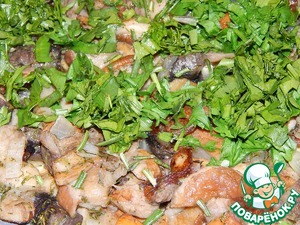 В процессе обжаривания к грибам добавить зелень.