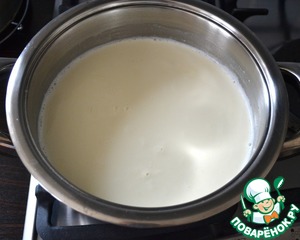 Молоко и сливки влить в кастрюлю, добавить ванильный экстракт, щепотку соли (по желанию) и довести смесь почти до кипения, затем уменьшить огонь до слабого.