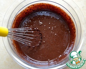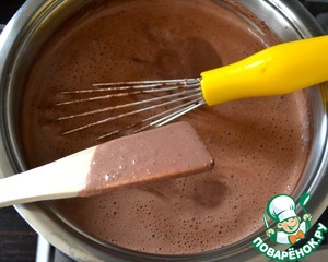 Желтки растереть с сахаром, добавить какао и взбить всё до растворения сахара. Затем влить половник молоко и как следует размешать.