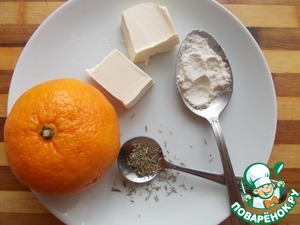 Приготовить масло, тимьян, мандарин и муку. Две сковороды. В одну влить растительное масло. Поставить на огонь.