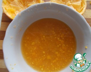 Потрите цедру на мелкой терке и выжмете сок с мандарина, смешайте.