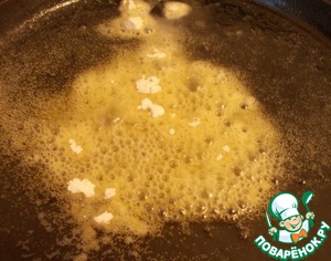 Отдельно на сковороде растапливаем масло. Добавляем муку и помешивая доводим ее до слегка золотистого цвета.